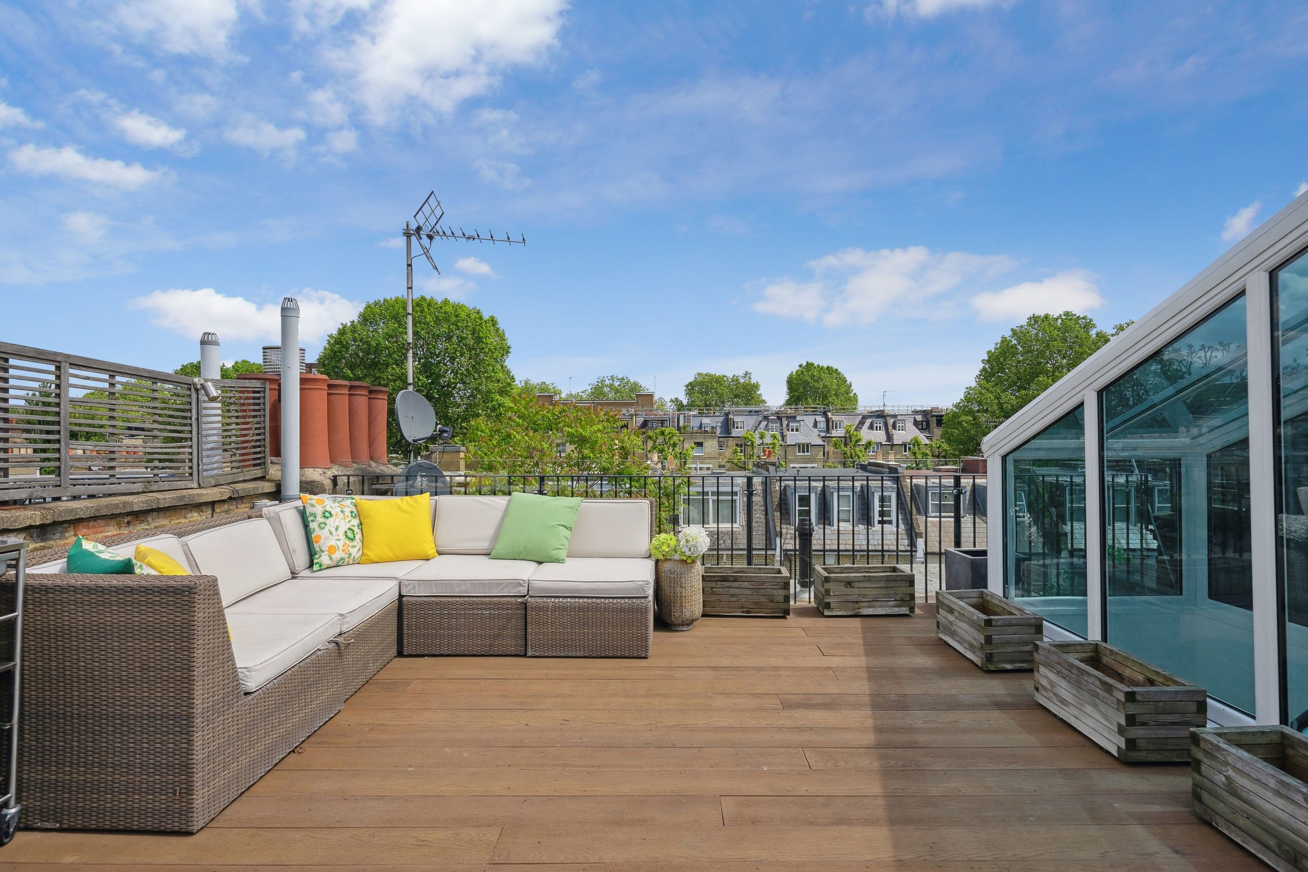 As you enter up the stairs to the third floor, you are greeted with a spacious open-plan kitchen and living area, along with an outside area, perfect for entertaining guests or simply relaxing after a long day. The highlight of this home is the large roof terrace, offering 360-degree views across London. With modern finishes throughout, this home exudes luxury and sophistication.