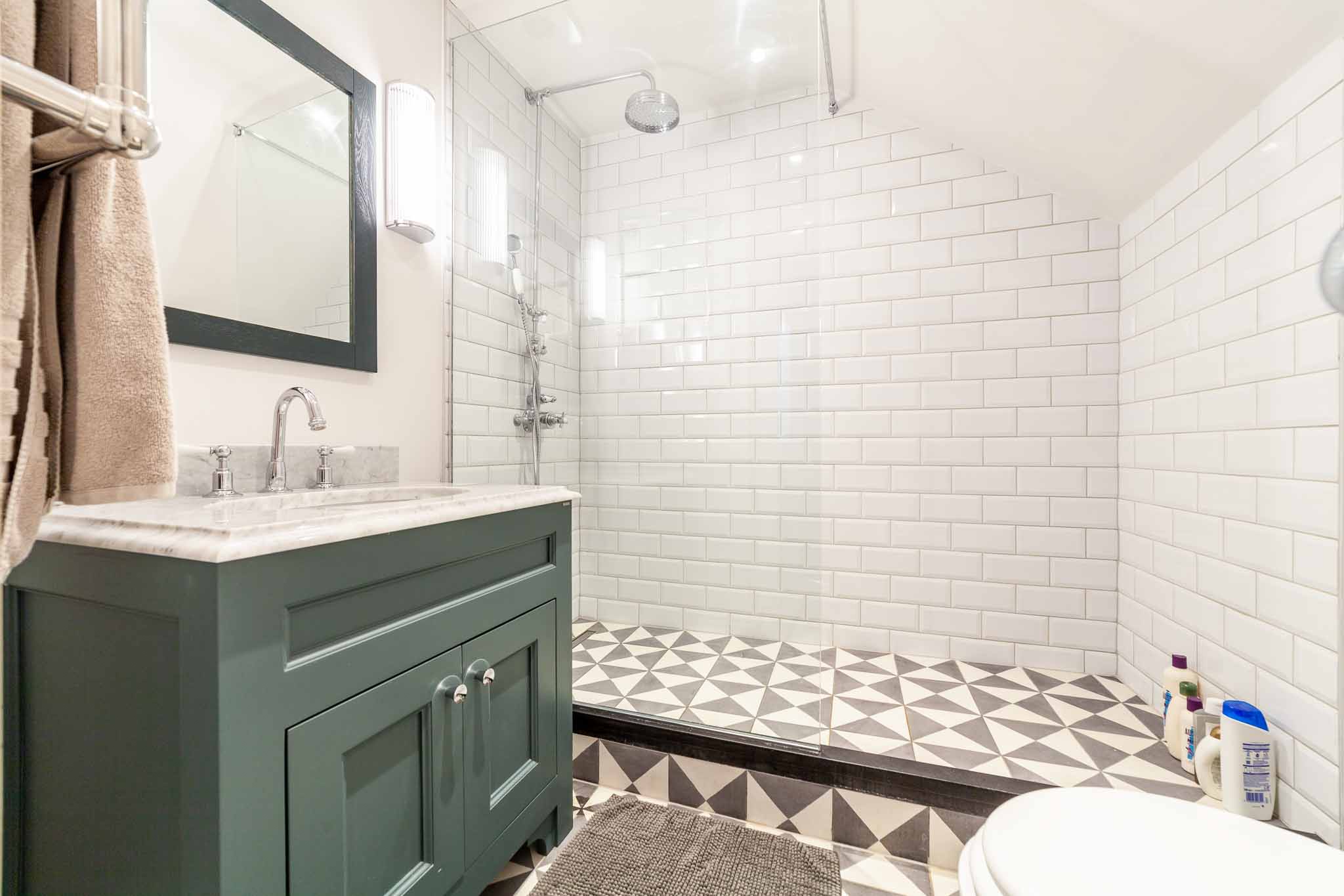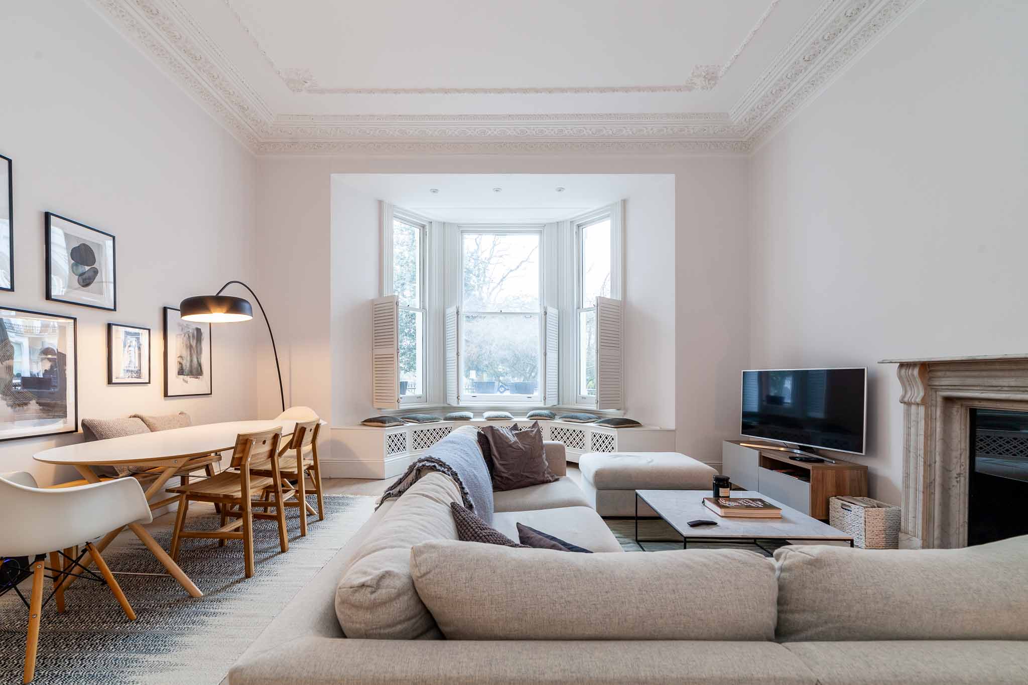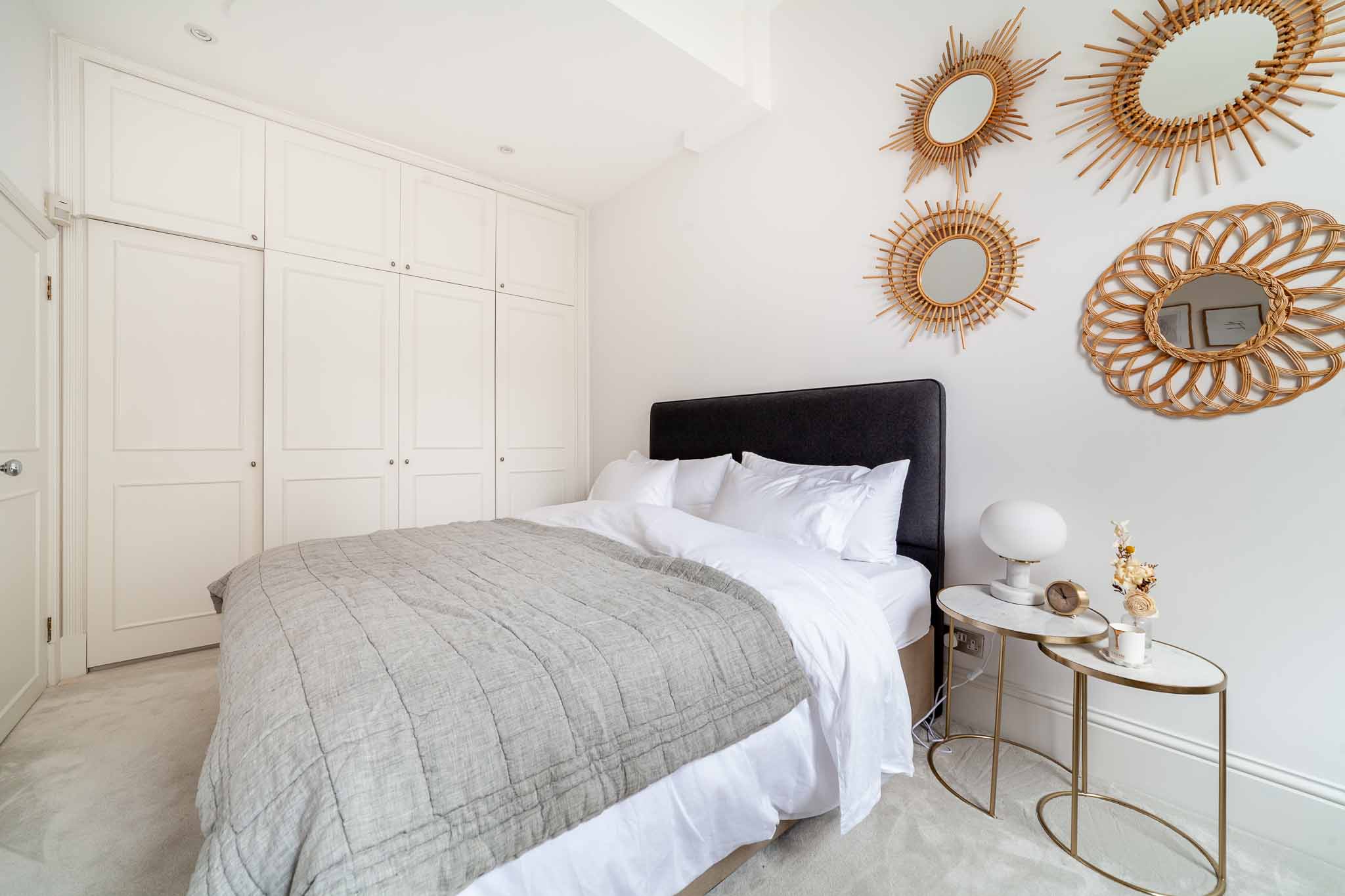 The property is finished to the finest standard and includes two bedrooms and two bathrooms, one of which is an ensuite to the principal bedroom. The property also features a large reception room, perfect for entertaining, that has an abundance of light as a result of the grand bay windows, a bespoke separate kitchen, and ample storage throughout.