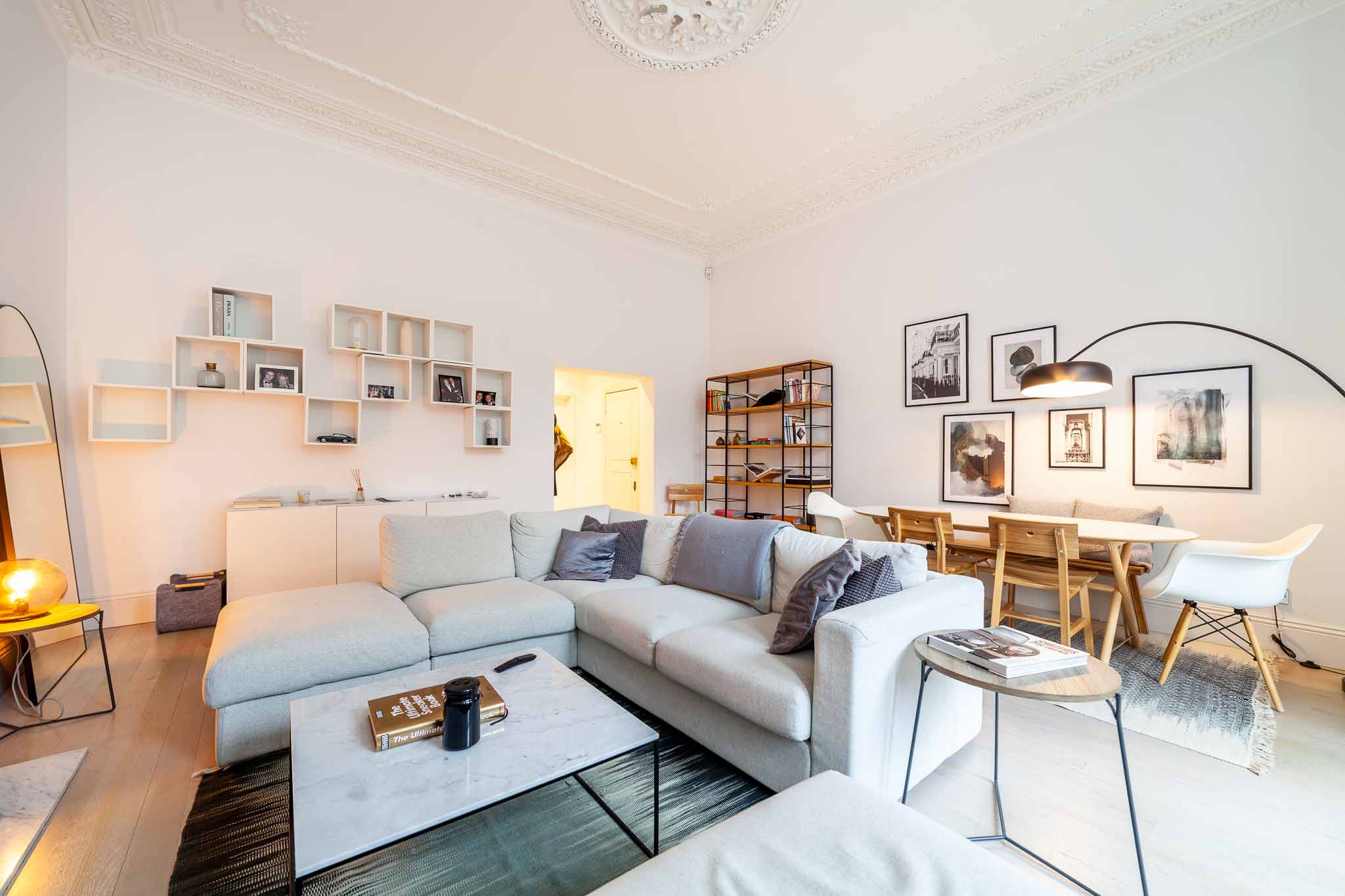 Featuring both high-end carpet and wood flooring throughout, alongside beautiful furnishings and decorative ceilings in the living area, the property has a unique timeless design that exudes grandeur and comfort. The bedrooms, located peacefully to the rear of the property, benefit from large wardrobe areas, resulting in an abundance of storage. The principal bedroom is impressively designed and smartly finished, benefiting from an ensuite.