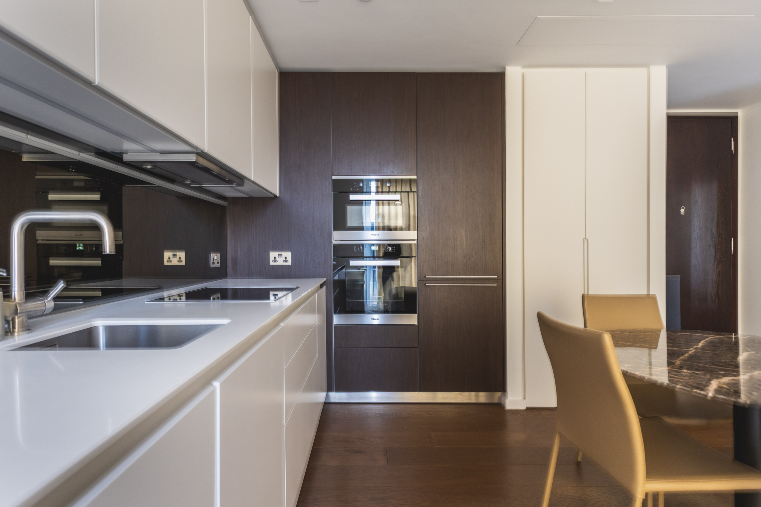 -A modern fully fitted kitchen with integrated appliances