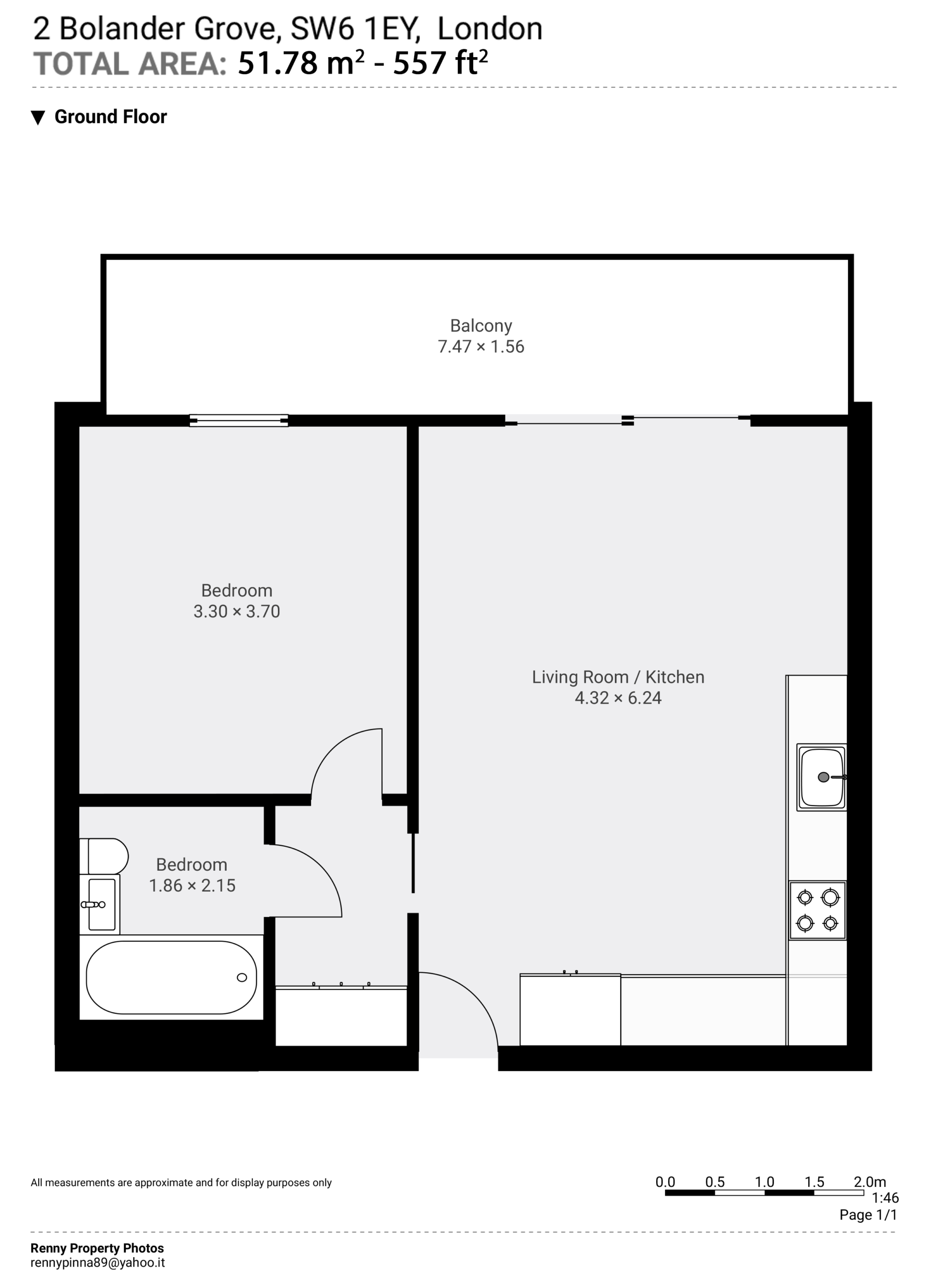 Size: 557 sqft / 51.8 sqm