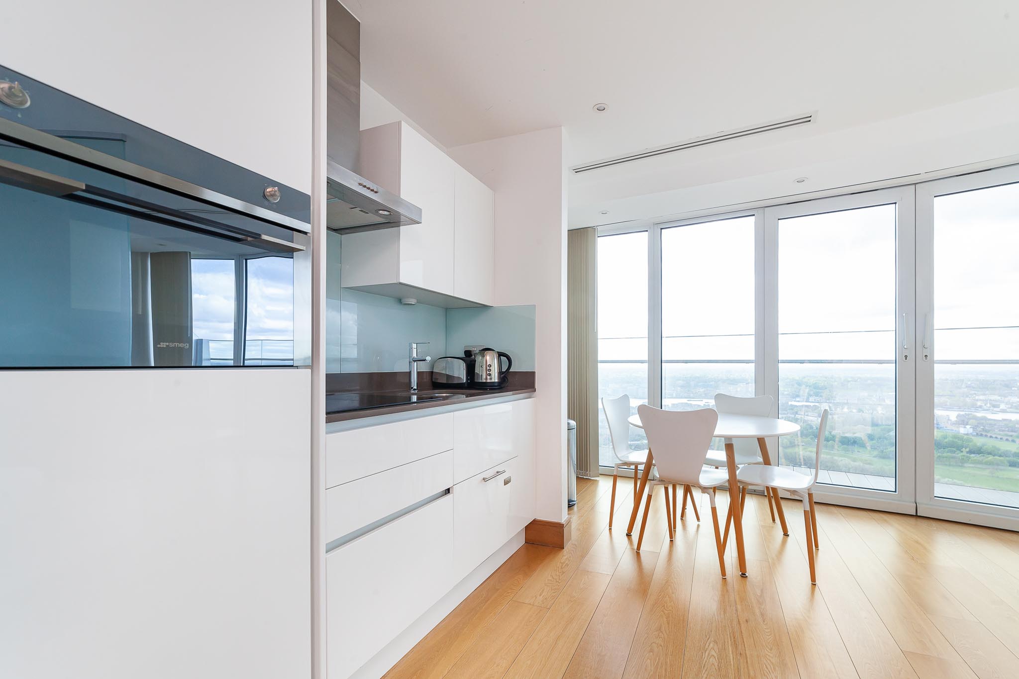 This modern property comes fully furnished and includes an open plan living area, fully fitted kitchen with integrated appliances, a smart bathroom and a private balcony. Residents will have access to the largest residential gym and leisure facility in London.