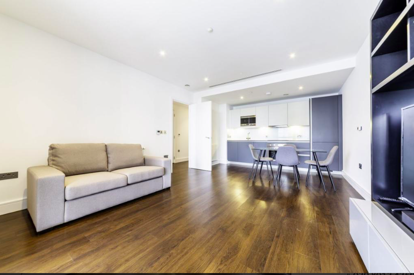 The apartment features a walnut hardwood flooring, recessed LED down lighting and comfort cooling throughout. The kitchen is equipped with a stone worktop with smoke grey splashbacks as well as fully integrated stainless steel Smeg electric appliances. You’ll enjoy bespoke entertainment units in the living room, providing convenient low-level cupboard space and bookcase storage above. The bedroom is fitted with quality oatmeal coloured carpet and floor-to-ceiling wardrobes, the ideal place to unwind after a long day. The apartment will benefit from a luxurious bathroom.