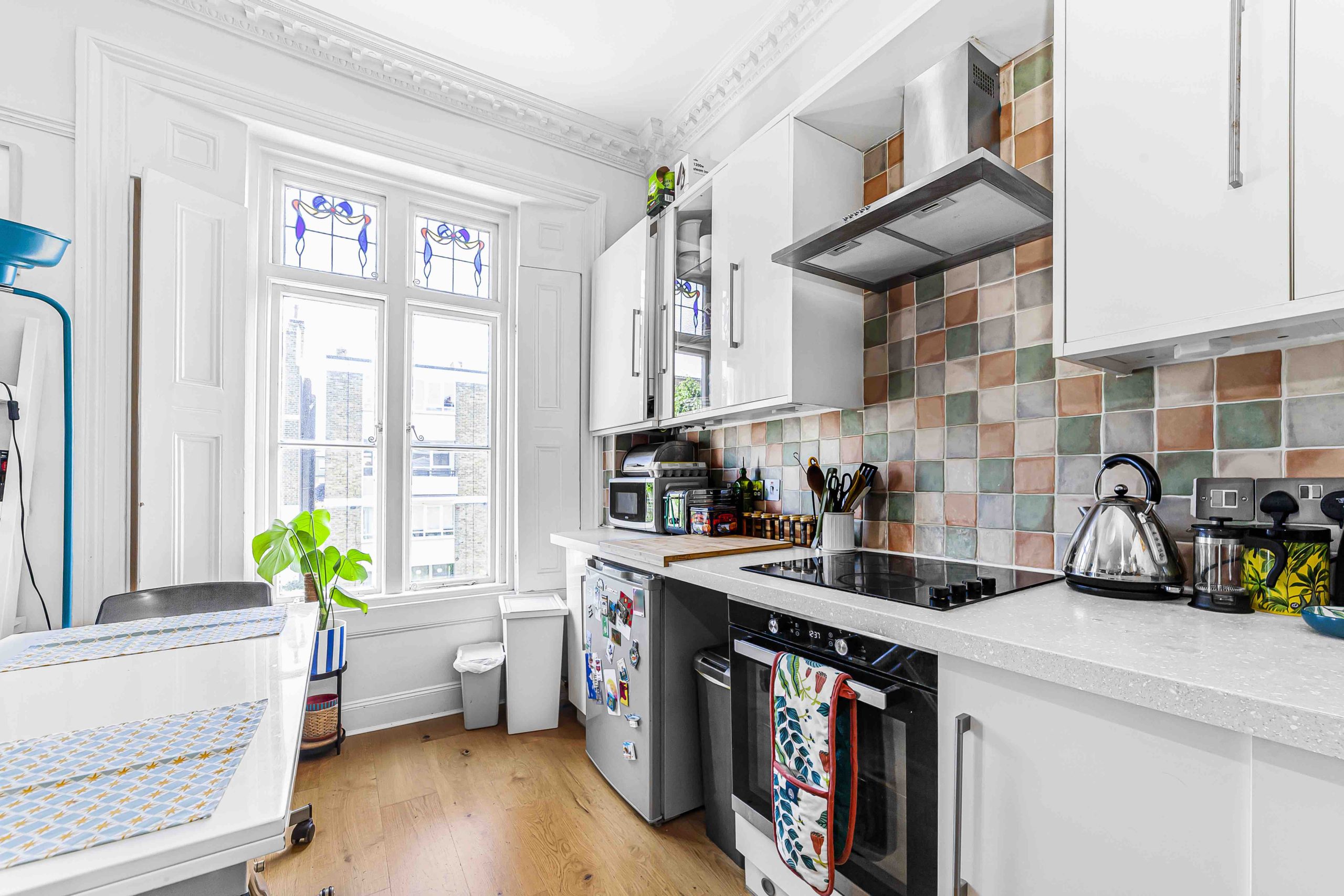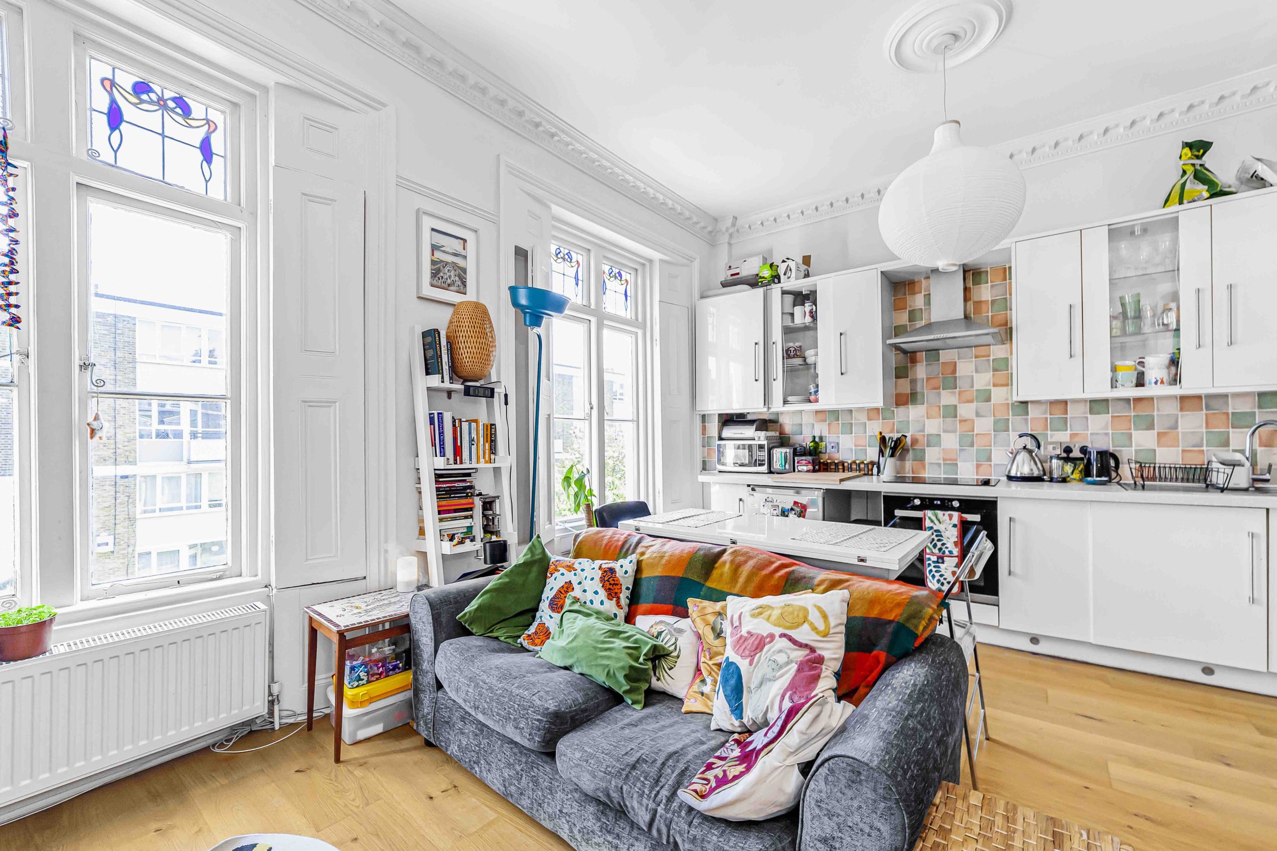 Located in a well-maintained converted Victorian House, the property comprises a spacious living area/kitchen, and well-proportioned double bedroom. The property benefits from wood flooring, high ceilings, beautiful cornicing and large stained sash windows throughout, which result in an abundance of natural light.